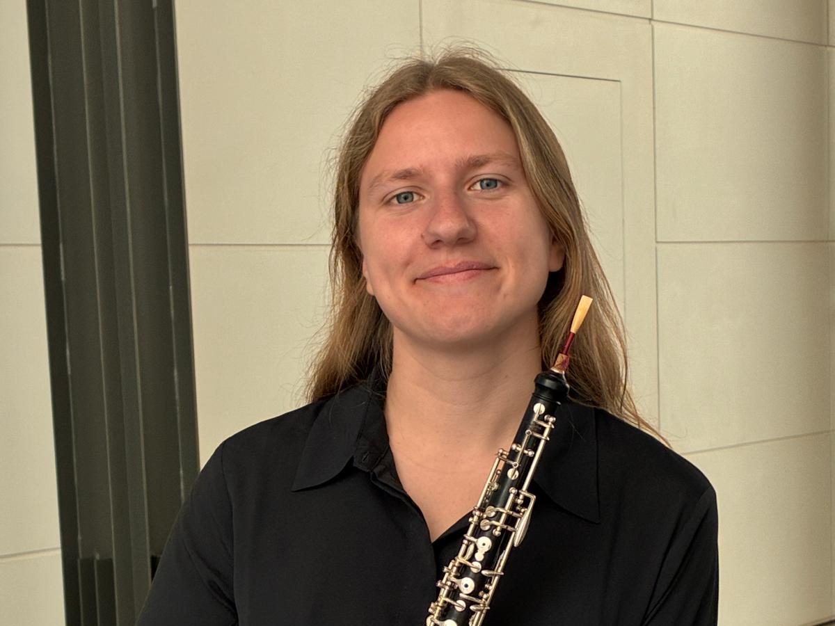 Née dans une famille de musiciens amateurs, Emeline Carré découvre très tôt l’univers de la musique. Dès l’âge de 7 ans, elle débute le hautbois au Conservatoire d’Amiens dans la classe d’Arnaud Courbet, où elle développe un attachement profond à l’instrument, nourri par un environnement familial propice à l’éveil artistique. Cette atmosphère musicale chaleureuse lui transmet très jeune l’amour de l’orchestre et du partage musical.